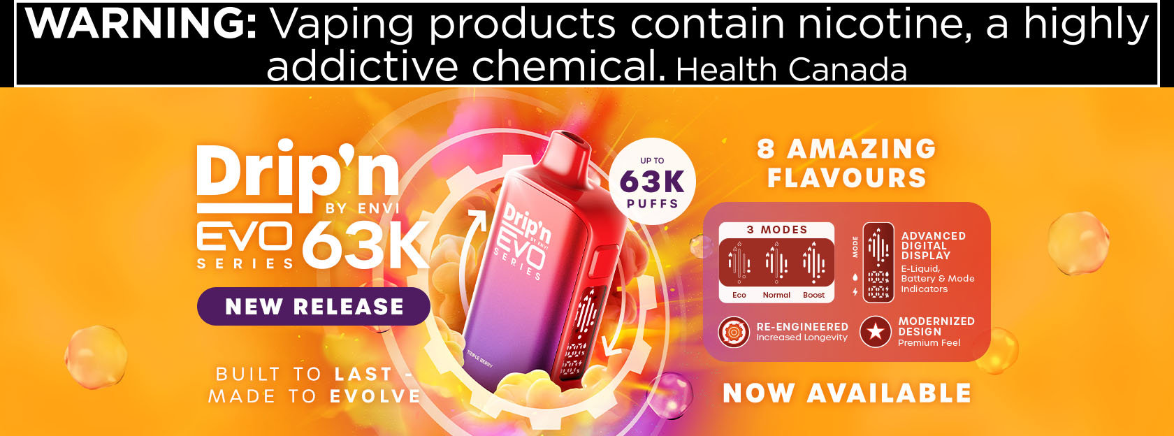 Vape jetable Envi Drip'n Evo 63K - Pêche juteuse glacée